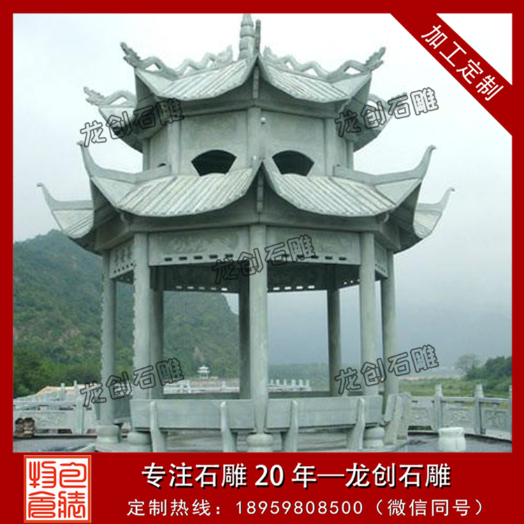 第三,必須通過(guò)各種雕刻手法,將石雕涼亭完美地展現(xiàn)出來(lái)。這一點(diǎn)是至關(guān)重要的。要完成一個(gè)石涼亭,有可能要用到圓雕、浮雕等多種手法,如果功夫不到家,是很難獨(dú)自完成一個(gè)精美的石涼亭的。