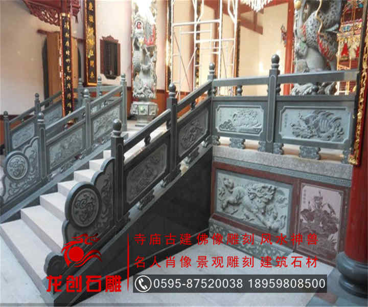 石雕欄板在仿古建筑、護(hù)城、護(hù)河的圍護(hù)方面有著其他材質(zhì)的欄桿所無法比擬的優(yōu)勢。欄板雕刻 工藝精美,欄板上面雕刻著我國傳統(tǒng)的吉祥圖案,也有文化景區(qū)使用石雕欄桿敘述當(dāng)?shù)氐奈幕瘋鹘y(tǒng)。石雕欄桿材質(zhì)常使用天然石材的漢白玉欄桿和大理石欄桿、青石欄桿等,經(jīng)久耐用,使用壽命長。