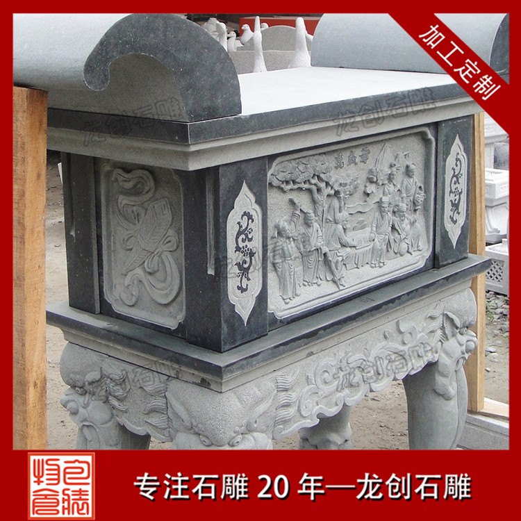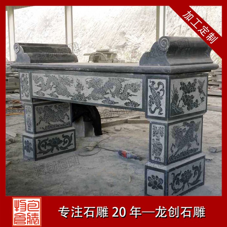 • 特點:青石顏色沉穩,質地細密,耐風化,是石雕供桌常用的石材之一。其紋理自然,給人一種古樸典雅的感覺。