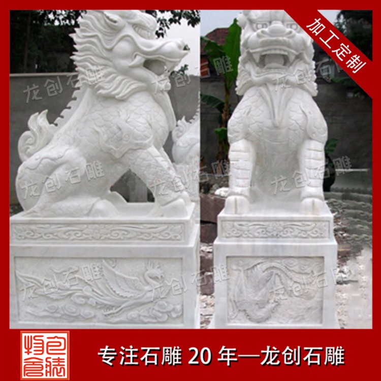 麒麟本身是具有集大成寓意的瑞獸,在民間被廣泛推崇。以麒麟為形態(tài)打造的石雕麒麟,可用于造景、點綴空間、祈福、轉(zhuǎn)運等等。漢白玉制作的麒麟石雕,不僅可以實現(xiàn)麒麟的美好寓意,而且在開光之后,更具有鎮(zhèn)宅、化煞、祈福、招財?shù)撵`力。所以,一對麒麟石雕既可以放置在商業(yè)大樓正門,也可以擺放在住宅區(qū)、別墅區(qū)的正門。風(fēng)景區(qū)、陵園區(qū)、寺院道觀等,擺放麒麟可以帶來吉祥寓意的風(fēng)水作用,保佑來玩的人群,鎮(zhèn)宅辟邪。漢白玉石雕麒麟開光,可以以日月光洗禮,吸收日月精華來開啟麒麟石雕的靈性,也可以請寺廟大師念經(jīng)開光。