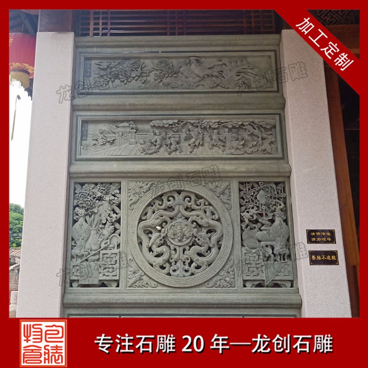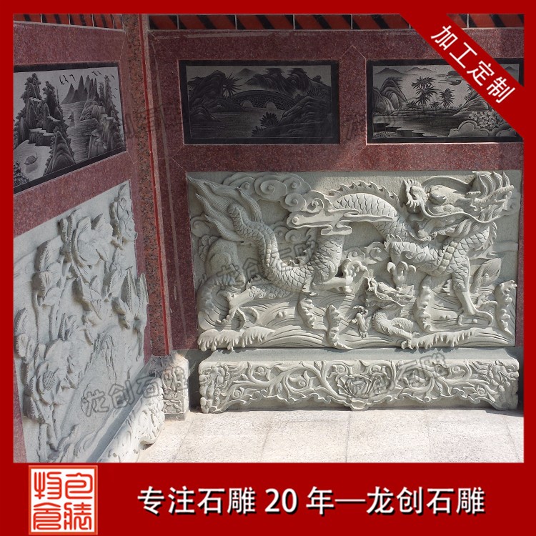寺廟浮雕墻制作的厚薄度選擇一般有所屬物象的性質(zhì)、雕塑的主題內(nèi)容、放置位置及光線強(qiáng)弱等因素決定。浮雕壁畫作為我國傳統(tǒng)建筑中所特有的獨立構(gòu)建,被廣泛用于不同類型的建筑中,青石是各種石材中環(huán)保的石材,因其取材方便,自然存量巨大,耐磨,耐風(fēng)化,無輻射。