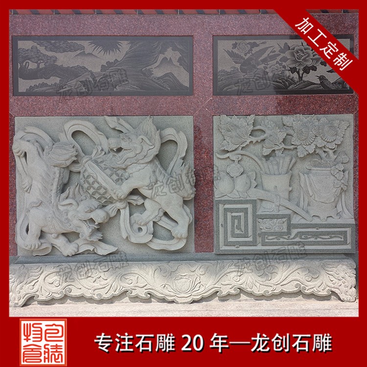 寺廟浮雕墻的圖片從雕琢挑選看,其實國畫風(fēng)格的雕琢題材也都應(yīng)用比較多。從各地的石材浮雕圖設(shè)計看,有許多國畫風(fēng)格的雕琢挑選,主要是以祥瑞寓意為主,比如常見的有"比年有余"(蓮花與鯉魚)、"喜上眉梢"(喜鵲與梅花)、"福祿壽"(滿意與葫蘆等)等,還有民間常用的就是梅蘭竹菊四君子,以國畫繪畫風(fēng)格來雕琢展示,整個雕琢風(fēng)格都非常不錯,畫面質(zhì)感比較強(qiáng)。