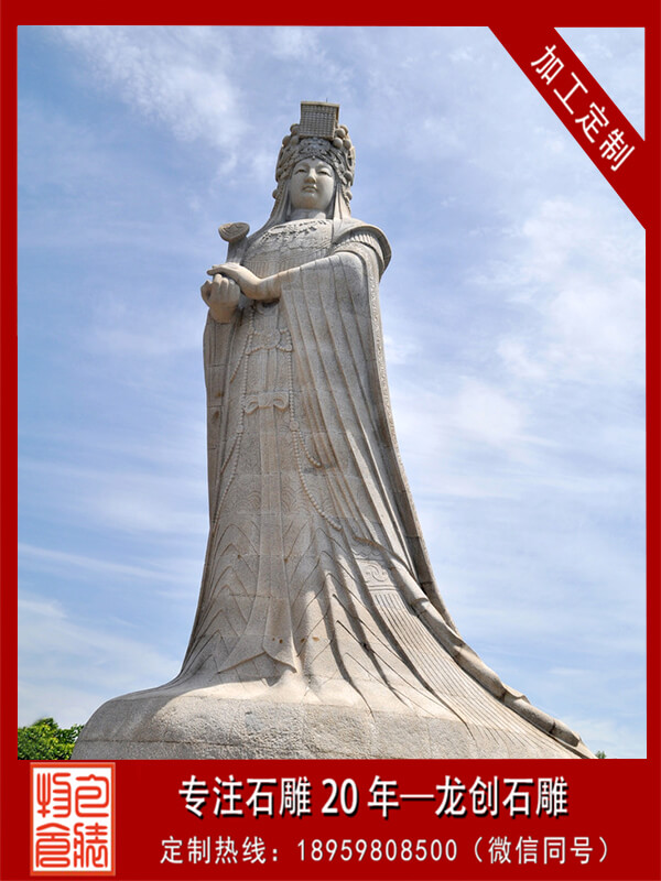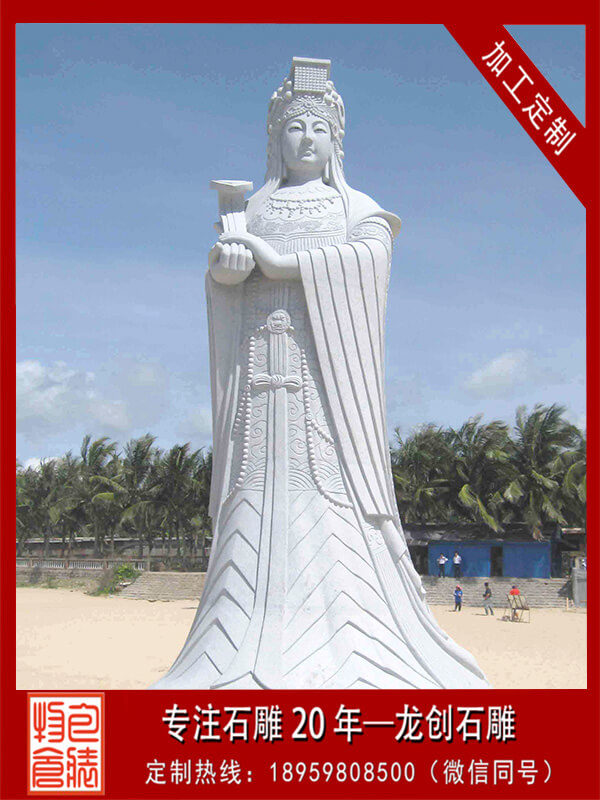 媽祖石雕,以中國東南沿海為中心的海神信仰,又稱天上圣母、天后、天后娘娘、天妃、天妃娘娘、湄洲娘媽等。這一信仰的主體據說是由真人真事演變而來的??疾鞁屪娴纳降弥?,這一信仰來自民間傳說。首先是傳說,然后是傳說的歷史化和神化,最后形成普遍的媽祖信仰。