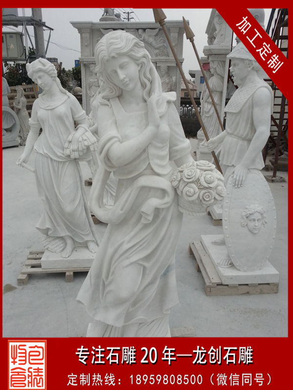 漢白玉西方人物雕塑顧名思義就是用漢白玉雕刻出的西方人物雕塑。漢白玉通體潔白,也用于雕刻佛像等,西方從古希臘時(shí)代就用白色的大理石作為人像雕刻材料。在日常生活中,我們經(jīng)常能看到色調(diào)淡雅、紋理清晰、圖案美觀的大理石。人們常用大理石來(lái)裝飾墻壁、制作桌面及各種文具和工藝品。北京故宮各大殿臺(tái)基周?chē)臋跅U,就是用純白色大理石制作的。這種純白色的大理石叫作漢白玉。