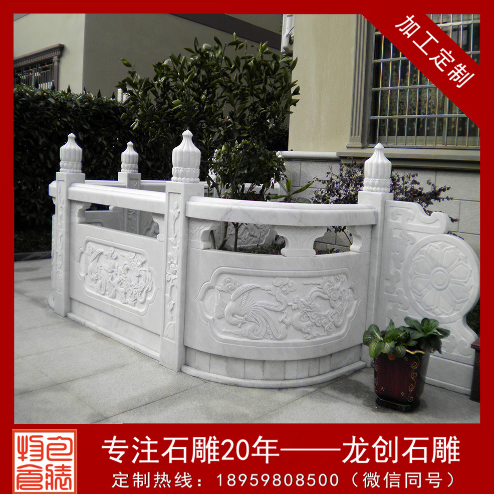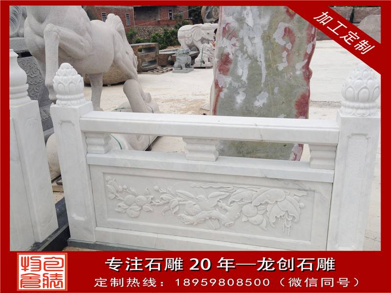 大理石欄桿的制造裝置工藝是祖先留下的寶貴財(cái)富,許多工藝的口訣都是工匠在操作中形成了自己的習(xí)慣,并一代代口傳親授,薪火相傳。大理石欄桿具有很強(qiáng)的表現(xiàn)力,可雕刻出各種古典式樣的圖畫。有著時(shí)尚、美觀、環(huán)保、抗老化、不變形的性能長(zhǎng)處,可廣泛用于市政、水利、公園、交通橋梁等護(hù)欄工程。