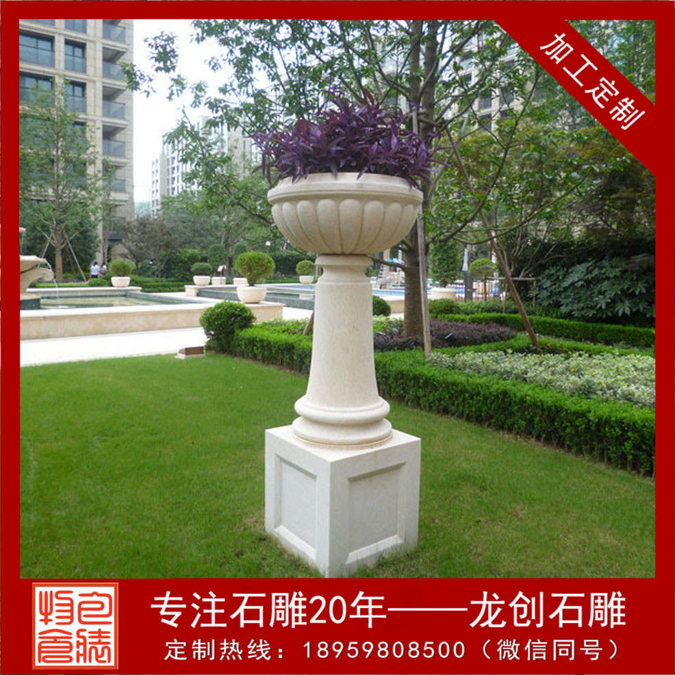 被精雕細(xì)琢而成的天然石雕花盆。形態(tài)逼真,許許如生。適用于小區(qū),廣場,園林,酒店,學(xué)校,戶外園林景觀工程等場所。這些花缽靈活多樣,隨處可用,尤其對于城鄉(xiāng)建筑比較密集和其他一些難于綠化地區(qū)的美化,有著特殊的意義。美化環(huán)境時,可根據(jù)缽、盆樣式、大小的不同,進(jìn)行多種多樣的藝術(shù)組合。組合的形式可以是幾何式、自然式、混合式、集中布置、散置等,具體布局形式要由美化地點(diǎn)的具體情況決定。在較寬敞的地方,如廠前區(qū)、廣場、大型建筑門前、道路交叉口、停車場等處,小區(qū)石雕花盆可布置為樣式多變、五彩繽紛的小花壇,在商店、住宅的門前可隨機(jī)點(diǎn)綴一二。石雕噴泉花缽制作設(shè)計(jì)多種多樣,可以是圓形、半圓形、方形、多邊形等,立面可以分單層、多層等。設(shè)計(jì)的依據(jù)是要配合應(yīng)用地點(diǎn)的環(huán)境特點(diǎn)。
