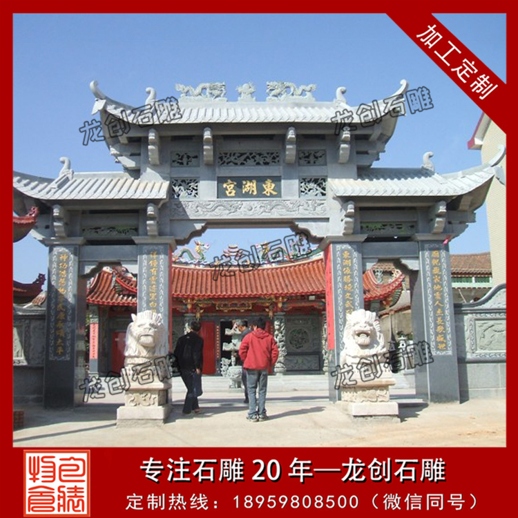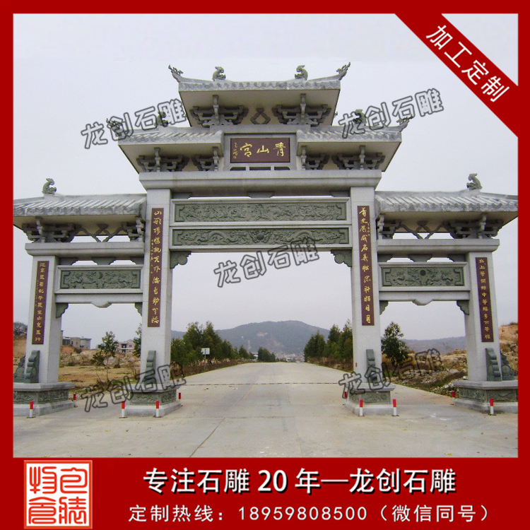 石牌樓上面雕刻有各種吉祥寓意的浮雕圖案,如獅子、龍鳳、麒麟、蝙蝠、梅蘭竹菊、荷花、牡丹等寓意吉祥的浮雕圖案。石牌樓多少錢?石牌樓價格主要受到材料成本的影響,如果材料成本可控,那么石牌樓價格不會太高。比如做一個總寬12米的牌樓,材質(zhì)是青石的,做出來的石牌樓價格在15萬左右,而這樣的價格一般是在簡單工藝的基礎上可以做出來。如果我們想要更高的工藝要求,以及想要一些款式比較大氣的,那么這其中的價格可能會差5-8萬的差別。