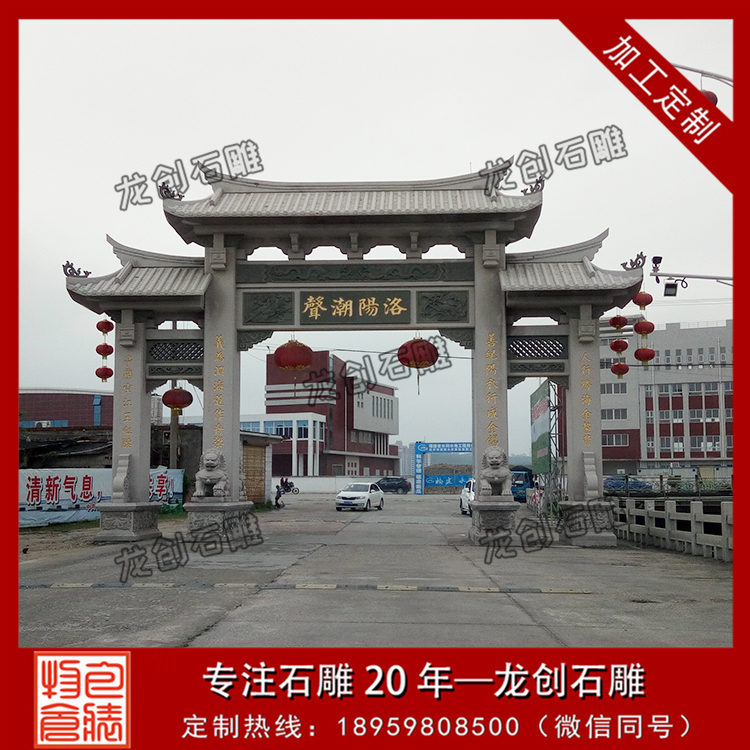 龍創(chuàng)石雕,專業(yè)的青石牌坊制作廠家,現(xiàn)有出售青石三門(mén)三樓、青石三門(mén)五樓、三門(mén)七樓等樣式的石牌坊,同是也承接來(lái)圖來(lái)樣定制,歡迎來(lái)電咨詢。